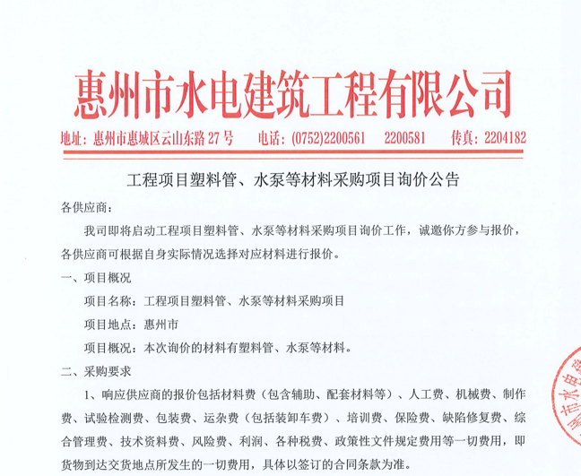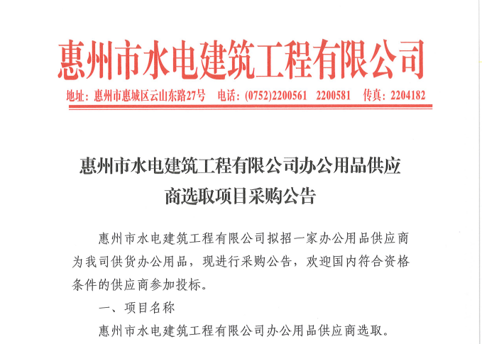 惠州市水電建筑工程有限公司勞務供應商庫擴庫評審結果公示……